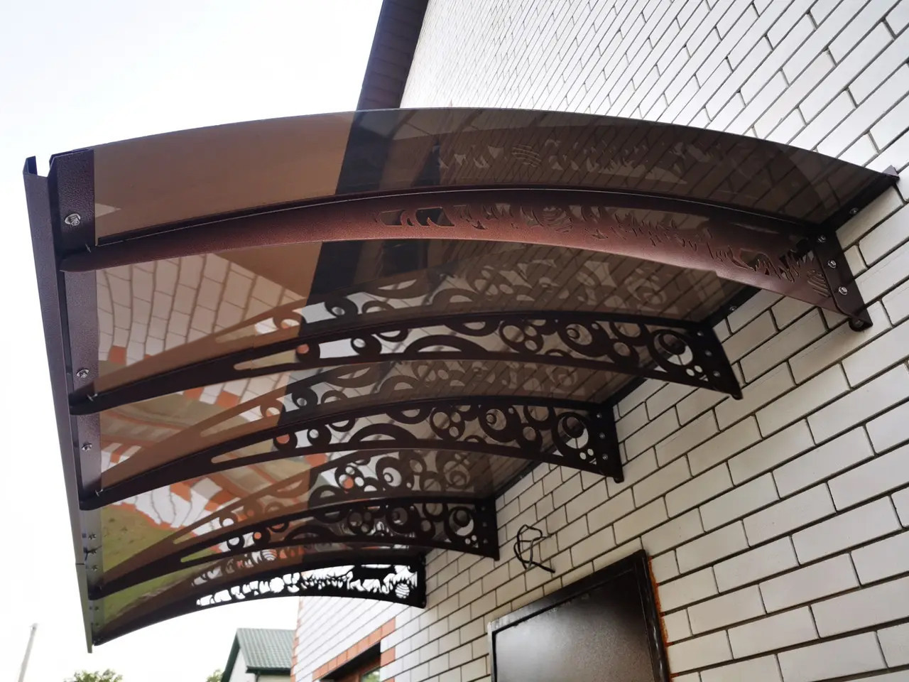 Дизайнерські кронштейни для навісу над дверима додають особливий шик екстер'єру вашого будинку. Кронштейни для навісу над дверима виготовлені у двох дизайнах: Хайтек та Стиль.